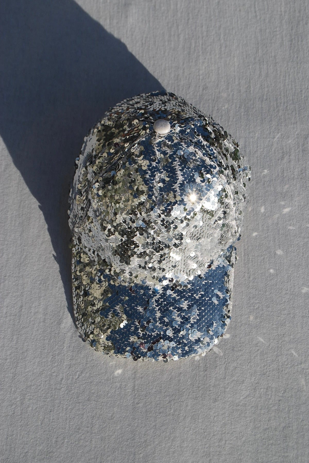 A four-panel baseball cap crafted on a premium 100% cotton base and fully embroidered with silver sequins. Designed with a gently curved visor and adjustable back strap for an effortless, unstructured fit.